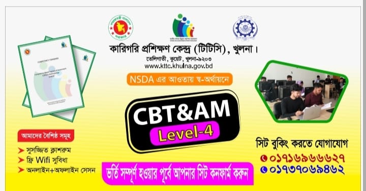 NSDA এর আওতায় স্ব-অর্থায়নে CBT&AM, L-4 কোর্সে ভর্তি বিজ্ঞপ্তি